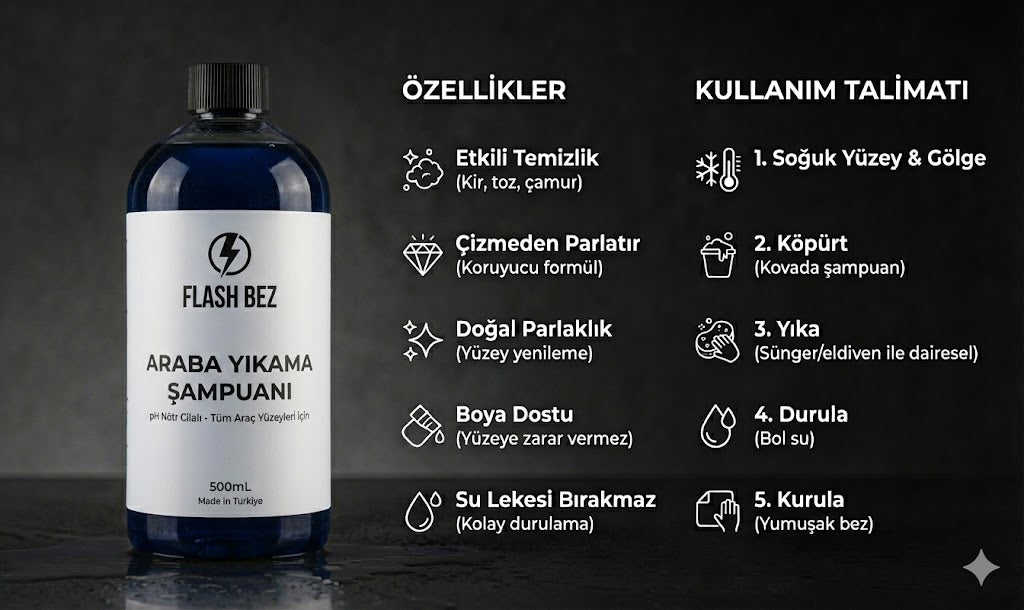 Flash Bez │ pH Nötr Cilalı Araba Yıkama Şampuanı 500mL